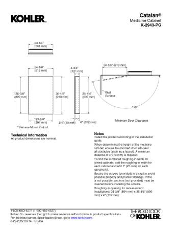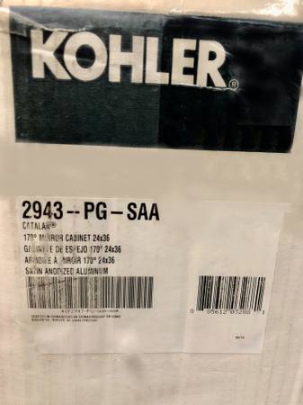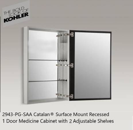 KOHLER Catalan® Model 2943-PG-SAA Vanity Triple Mirrored Cabinet New Open Box with slight nick at upper top right edge barely noticeable (see pic) easily replaceable or could be swapped with either 2 interior mirrors.