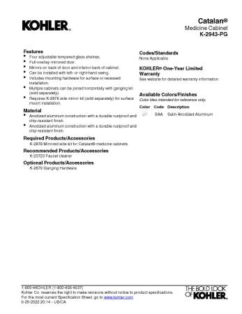 Note: wall mount requires K-2878 Mirrored side kit for Catalan®