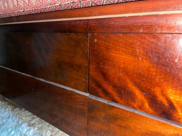 SOLID WOOD CRAFTSMAN SIDE BENCH WITH PILLOW TOP. THIS HAS 4 slow glide closing drawers and hand spun aluminum legs. The size is 67” length, 22” depth, 20” height without pillow. 24” with pillow