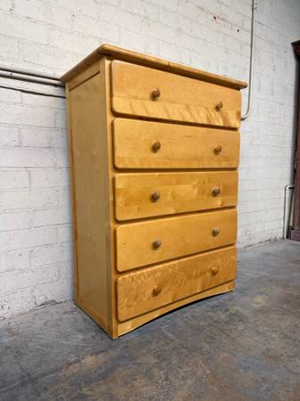 Delivery is available solid wood chest dresser with 5 storage drawers$370 OBO! Dimensions:W=34in. D=18in. H=46in. / Delivery is available. / Click profile picture for more.