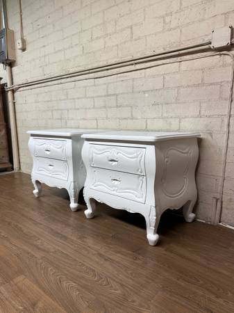 Delivery Is Available Vintage Solid Wood White Pair Of Nightstands $490 OBO! Dimensions:W=27in. D=19in. H=24in. / Delivery is available. / Click profile picture for more.