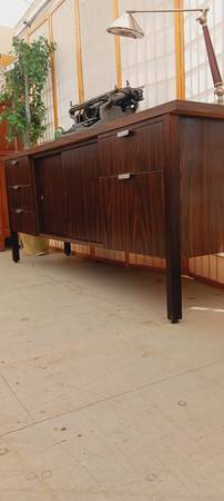 Just the right size for home or apartment or office. Tons of storage area. Perhaps an entertainment credenza. The construction is high end walnut veneer over plywood substrate case with solid walnut legs. No pressed board allowed.