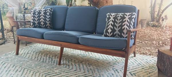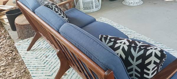 Good Condition, fabric on cushions is a bit worn but looks good still. Cushions are still firm.