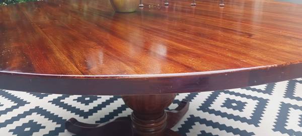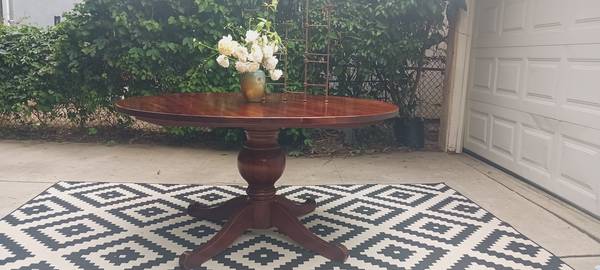 Round Monastery Pedestal Dining Table. It is in very good condition and is the type of table that will be passed down for generations.