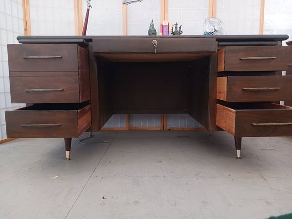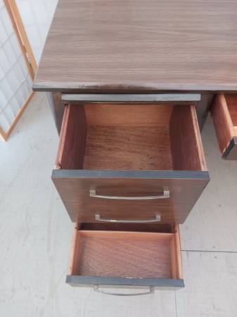 with filling drawer, some scuffs and wear. 59 length, by 34 depth, 29 height.