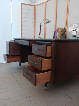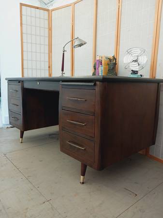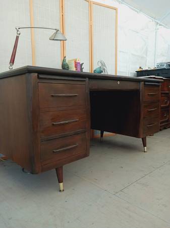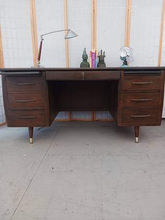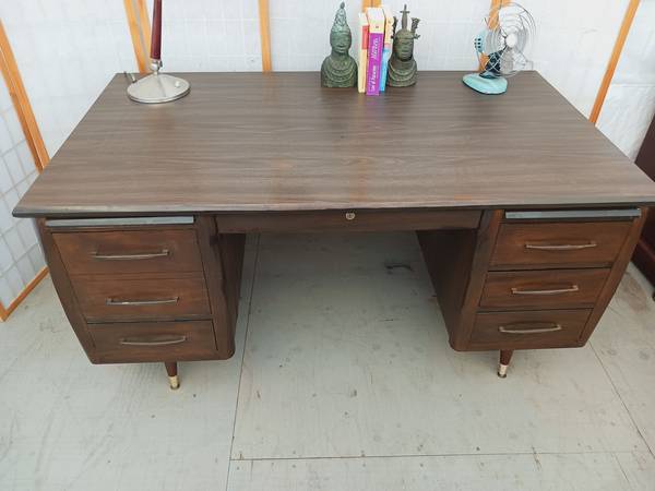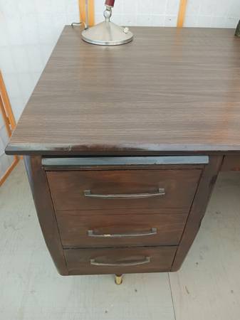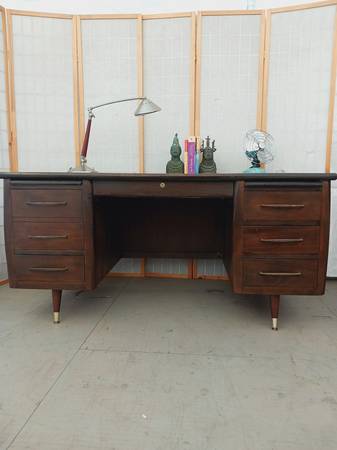 Delivery 95 within 25 miles. No steps or stairs included. This desk is about 190-200 pounds.