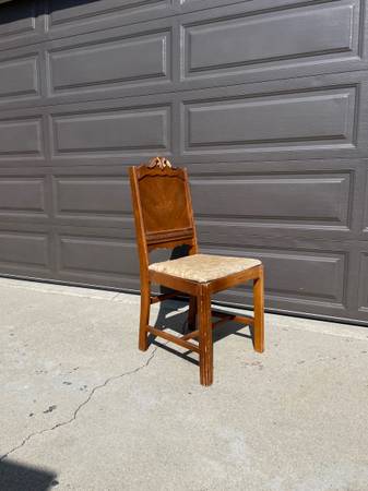Vintage chair – fair condition. Please note missing wood pieces at top back of chair. 38”H x 17” D x 18” W