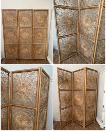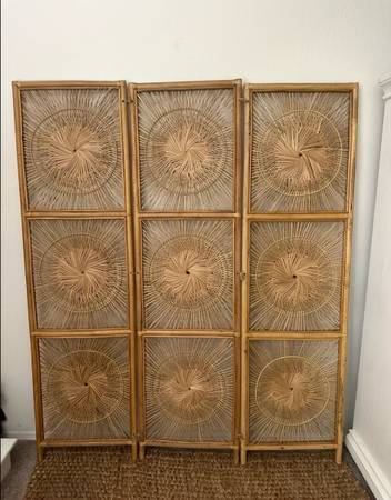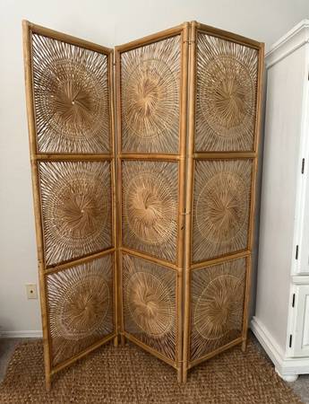 Vintage wicker/rattan starburst divider. No unraveling since the frame is made of bamboo. Rattan wire.