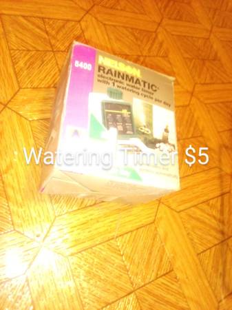 *Planter Holders $5 ea *Hose $10 (new, was $39) *Moss $5 *Watering Timer $5 *Tiki Torch Fuel $5 *Leaf Blower, Electric, w/ attachments