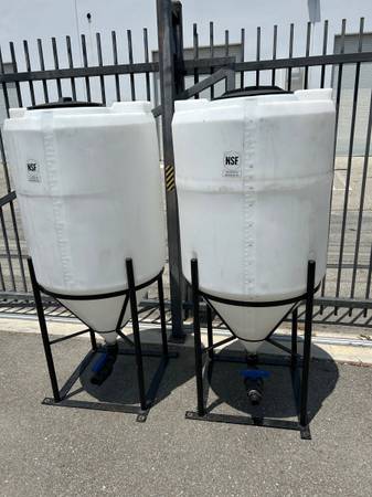 I have FOUR 100 gallon water (or any liquid) upright tanks for sale. In perfect shape and including the stands and some valves/elbows. NSF certified.