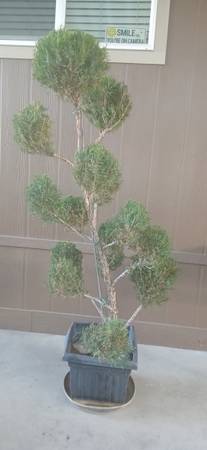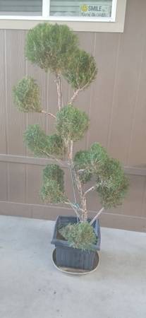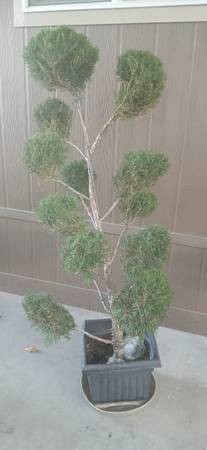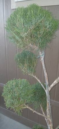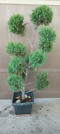Juniper with multiple balls topiary. Large plant over 6 feet tall. Very mature plant can stay in pot or go in ground. Bonsai's style juniper. Tree , plant. Potted tree.