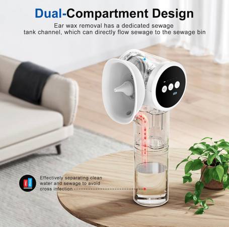 - Separated Dual Tank Design: This ear wax removal features an innovative separated dual tank design. More convenient and hassle-free to use. Unlike traditional ear washers that require you to rinse while catching dirty water with your other hand, this ear washers come with a separate 160ml water tank and a separate tank for collecting dirty water, which can directly flow sewage to the sewage bin, effectively separating clean water and sewage to avoid cross infection and make it easier to clean.