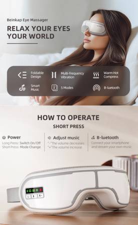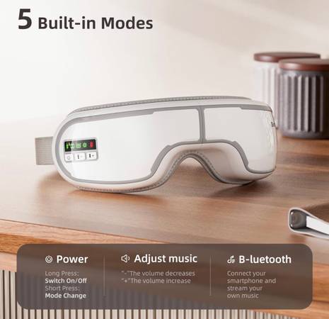 Enjoy Multi-functional Comfort: Beinkap eye massager can switch modes at will, offers 5 modes and customizable music(Notice: For each mode, that different modes have different experiences). You can also make the machine with your phone or tablet to play your favorite playlist on speaker while massaging your eyes. Device Name: YBY