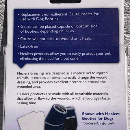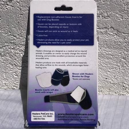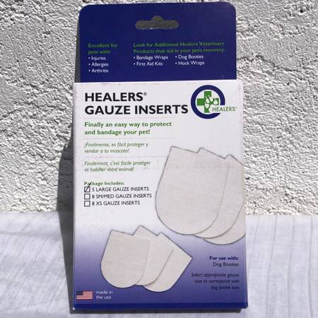 - Gauze replacement inserts are intended for use with the Healers Medical Dog Booties.