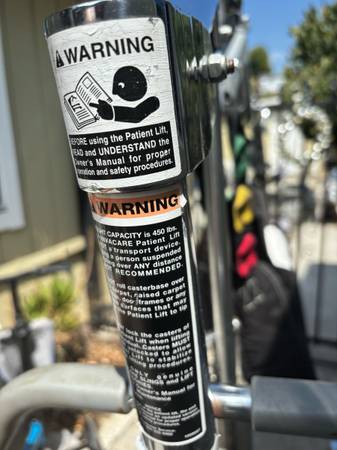 Patient Lift with sling with a max weight of 450 lbs $150