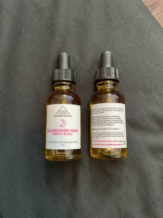 1 oz. bottle of Honor Yourself by Patrick Santa Ana Blessed Every Night Nourishing and Healing Oil. Made from organic hemp seed oil and avocado oil. $60 per bottle on the Patricksantaana website. $30 each or all 5 bottles for $125. Call Chris @ show contact info
