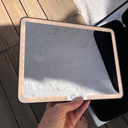 - Pick up Silver Lake - Pre-owned. Shows some minor (make up) wear. Please see pix for reference. - It has a removable and rechargeable LED light up mirror (iPad style) with 3 different light shades...