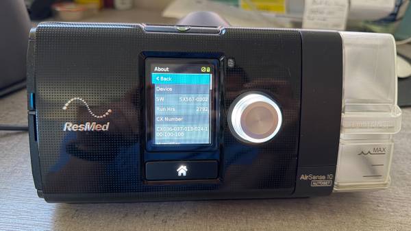 Used CPAP s10 AutoSet machine with 2730 hours on it. It has auto adjustable mode. Comes with heated hose, power adapter, SD card, carry bag, and mask.
