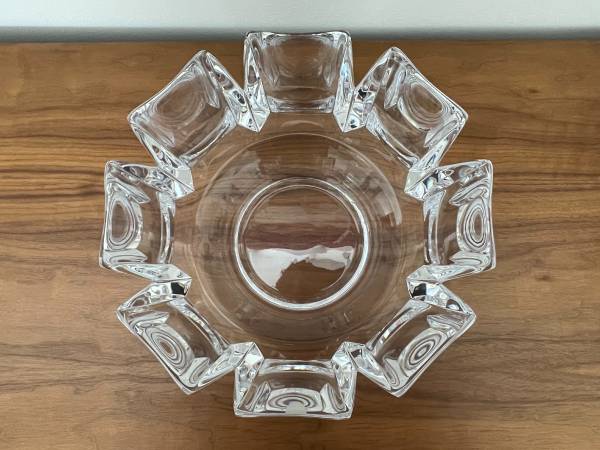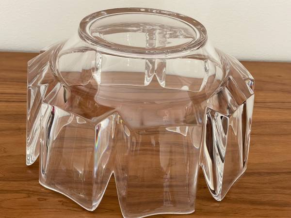 Orrefors is one on of the most revered classic Crystal companies. With numerous designer collaborations representing the best in glass design, the Corona by Lars Hellsten is no exception. Originally introduced in 1978, the bowls were made in a number of different sizes. This exquisite piece is the largest in the collection at over 9" in diameter and over 6 pounds in weight. It is a stunning addition to any home for both design or serving or display.