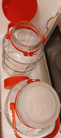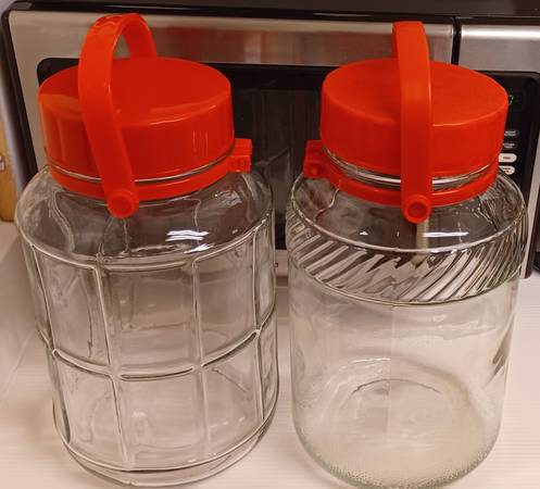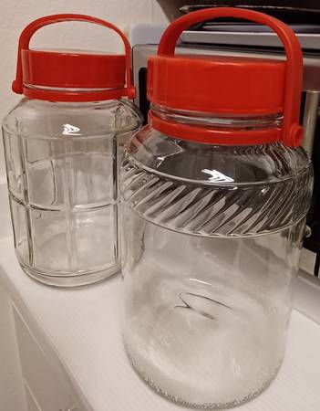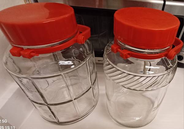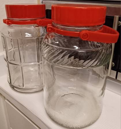 Selling two High-Quality 5L (1.32 Gallon) Glass Storage Jars with Lids & Handles Price: $12 each or both for $20 These durable, premium-grade glass jars come with secure lids and sturdy handles,...