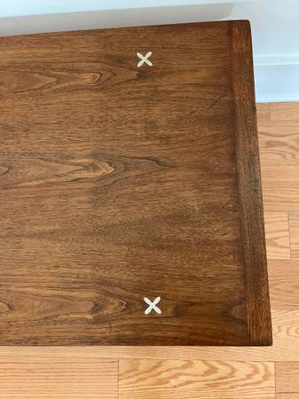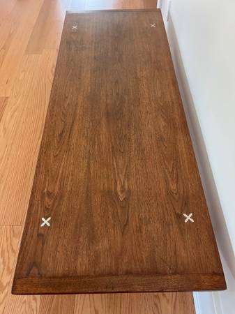 The X inlay is very special and makes this coffee table one of the favs that I've owned. Just moved into a new house and sadly, need to downsize as I have too many coffee tables. Photos taken with both lights on and off.