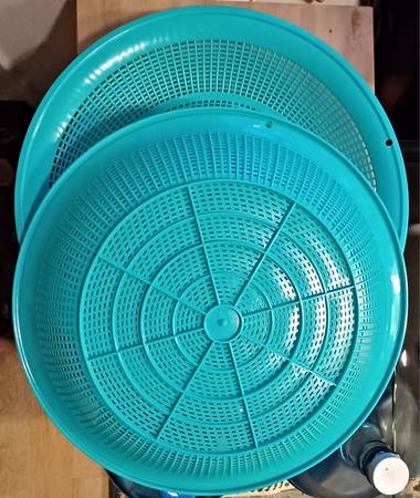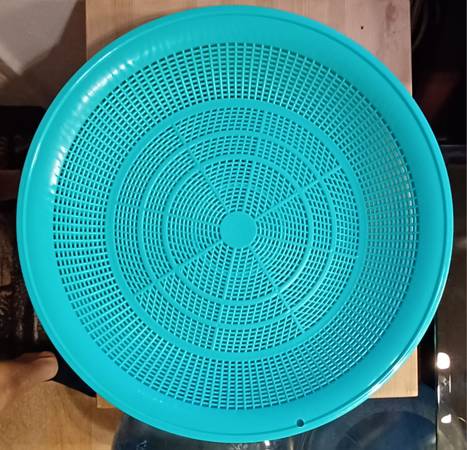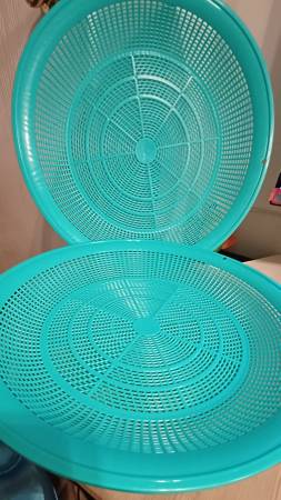 Barely used large 18.5" durable plastic blue colander plates. Can be used as colander or drainers or fruit holder. etc,,, I have 2 units Price: $6 each or both for $10