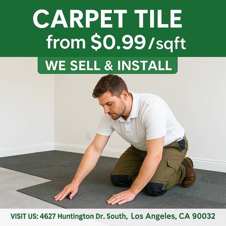 Carpet Tiles – $0.99/sqft Looking for comfort and style? Our Carpet Tiles start at just $0.99/sqft! 🛋️ Easy to install, versatile designs, and ideal for offices or living spaces. 📍 4627 Huntington...