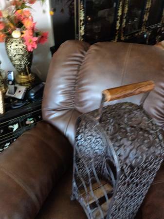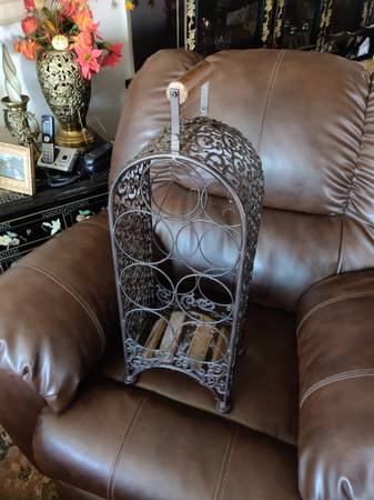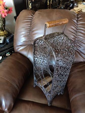 Black Decorative wine metal holder with a wooden base and a wooden handle. Can be also used as a decoration.