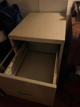 Filing cabinet. Two drawers. Bottom one locks, but I have lost the key. Free to a good home! Height: 29" Width: 15" Depth: 18" five six two - two seven seven - two two nine three