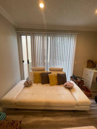 Gifting Large cream leather couch. Very heavy. Very Good condition. Comes from home with cat. Don’t have exact measurements but it’s large. See the glass door as a reference Requires 2 ppl to pick...