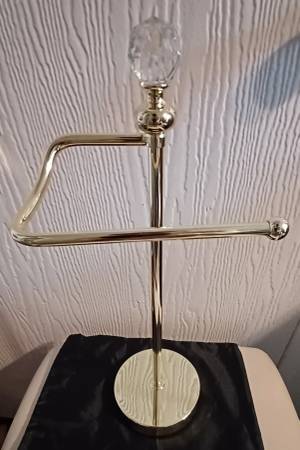 Beautiful Toilet paper holder polished Gold finished appearance, looks gorgeous and luxury. Has a exquisite crystal looking ball handle of diamond-shaped making tissue holder an elegant piece in your bathroom.