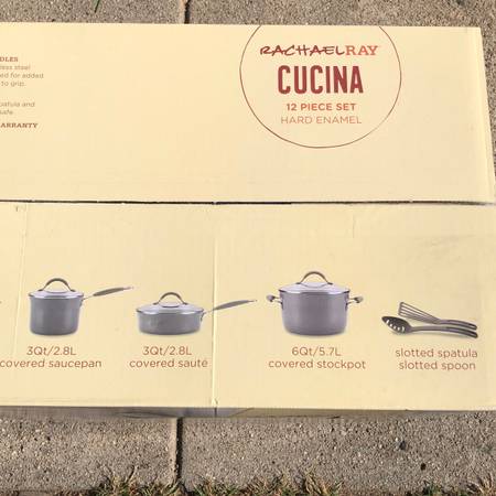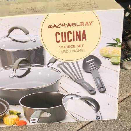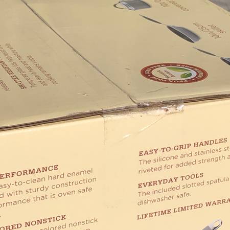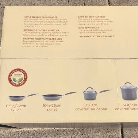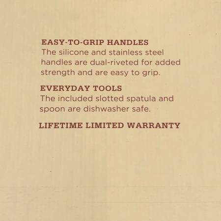 SET INCLUDES: 1-quart and 3-quart saucepans with lids, 6-quart stockpot with lid, 8.5-inch and 10-inch frying pans, 3-quart sauté pan with lid, slotted turner and spoon