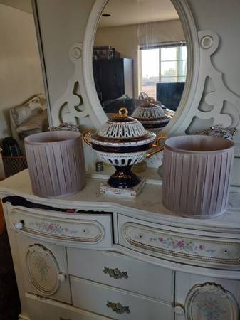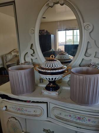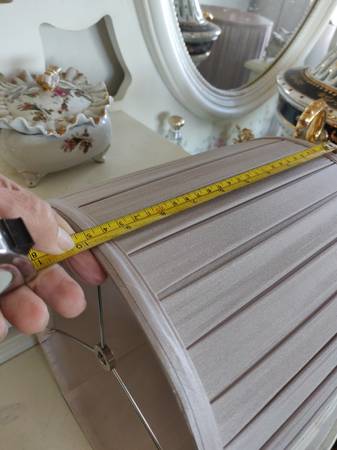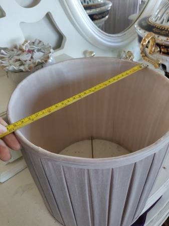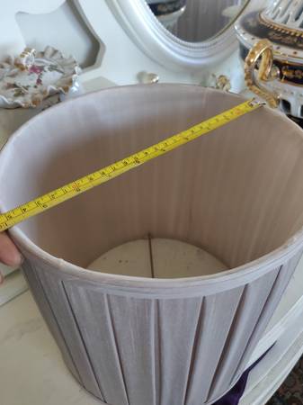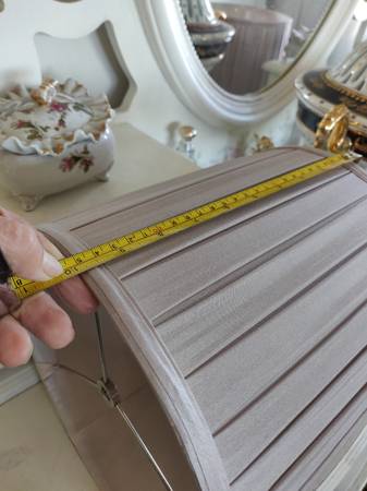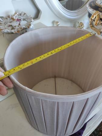 Two matching beautiful lamshades. Pearl Champaign color. Will match any lamps. Satin fabric . Small to medium size.