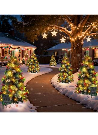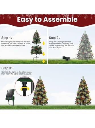 Solar Christmas Tree for Outside 3FT with 220 Tips, Prelit Solar Christmas Trees Lights with 160 LED, 8 Modes Lighted Outdoor Xmas Tree for Porch, Yar