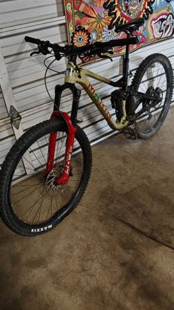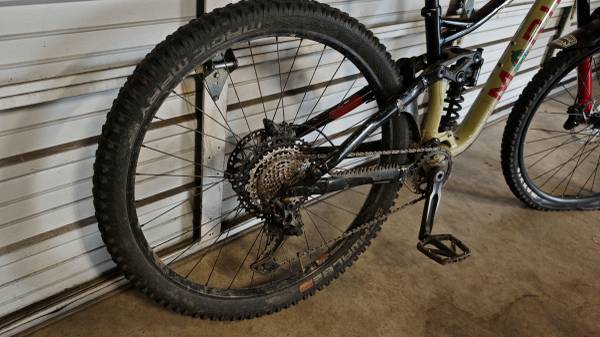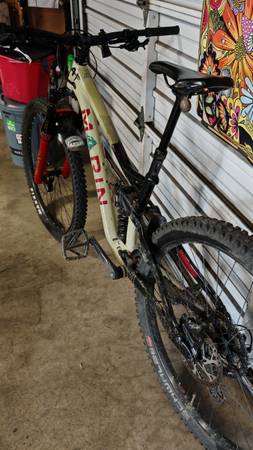 Beautiful color combination Marin 29er Size Medium 160 mil. travel mountain bike. This bicycle has always been garage kept and hung up. Dropper post. Only three rides on brand new cassette, chain, and chain ring. Shift super smooth and brakes are super strong. Top of the line Rock Shox Fork and rear shock . I have an extra spring for the rear shock. The wheels and tires are set up tubeless. The rear tire has a tire insert. This bike climbs well but descends excellent. This bike is ready to shred. Aesthetically I put protective frame stickers, when I first bought the bike, that probably need to be peeled off.