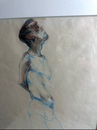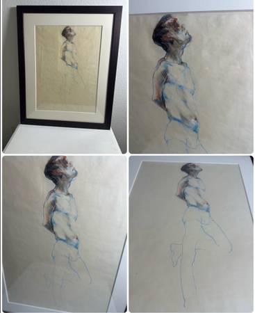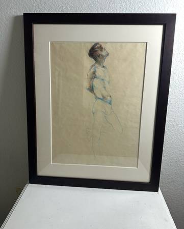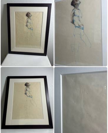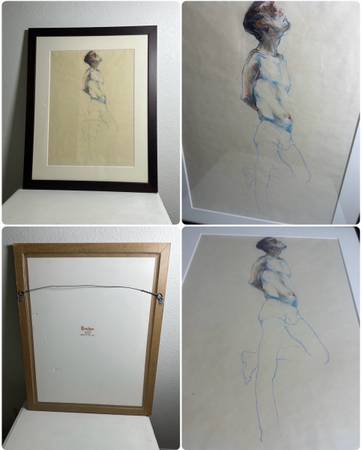 Sketched illustration artwork. See pics on condition of picture. Faux wood frame with glass. Frame has scuffs and wear. SOLD AS IS Framed by Frame Store Pasadena 8/19/2008 Minimalist Wall Art MCM...