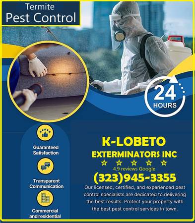 Encuentre servicio de control de plagas confiables en su área ,ahora llamenos (323)945-3355 K-LOBETO EXTERMINATORS INC.-.