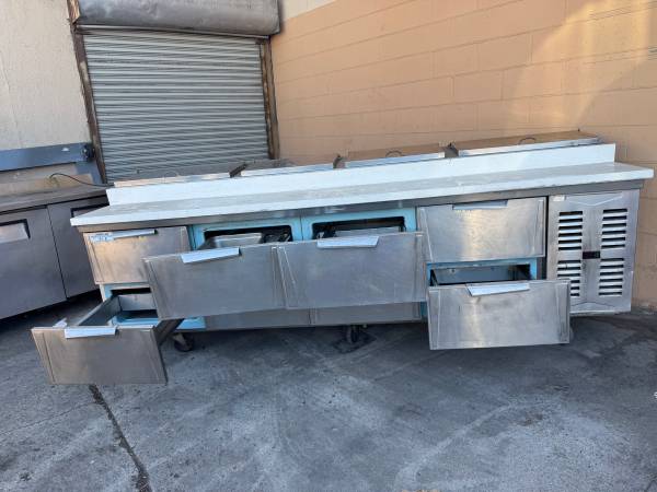 Used but solid. Stainless steel body, drawers intact. Normal wear from commercial use. Cooling system was working when removed from the kitchen. Always kept indoors. ( Guarantee 2 years but has to be maintained every year) we have the original invoice of the compresser.