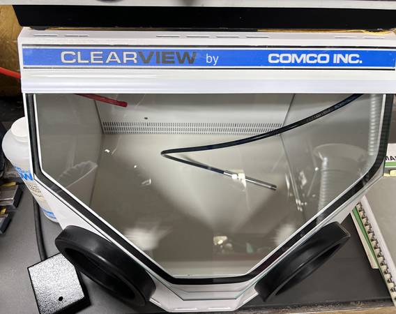 The Comco 'Clearview' Workstation is the most popular micro blasting cabinet. Designed to offer a clear, well-lit workstation with plenty of space for working on small to medium-sized parts, yet compact and designed to allow controlled airflow through the cabinet to ensure that your abrasive powder ends up in your dust extractor, not in the room.