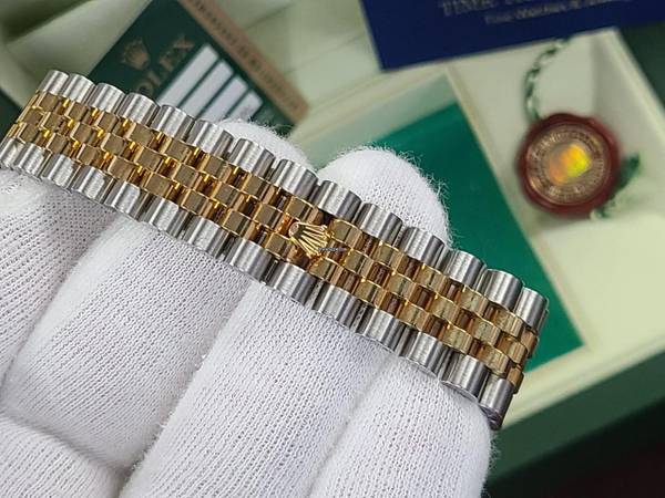 - 36mm REHAUT CASE: Full size historic men's, loved by women nowadays. Stainless steel and 18kt yellow gold. Solid version "Super" band, president clasp.