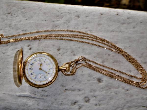 Beautiful Antique Elgin 14K gold Pocket watch with gold chain in working condition.