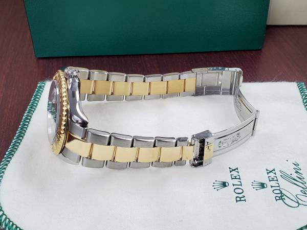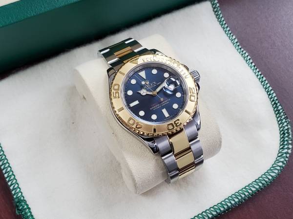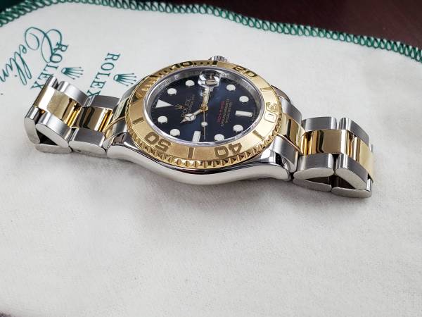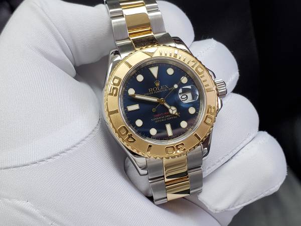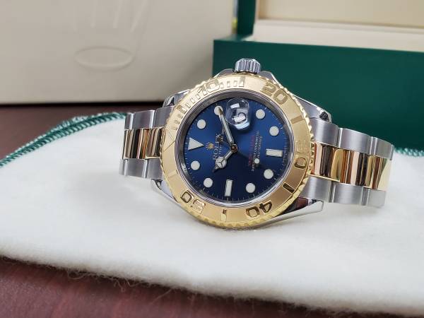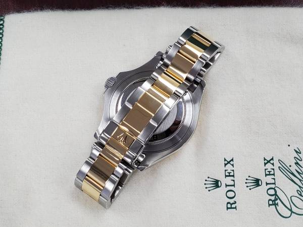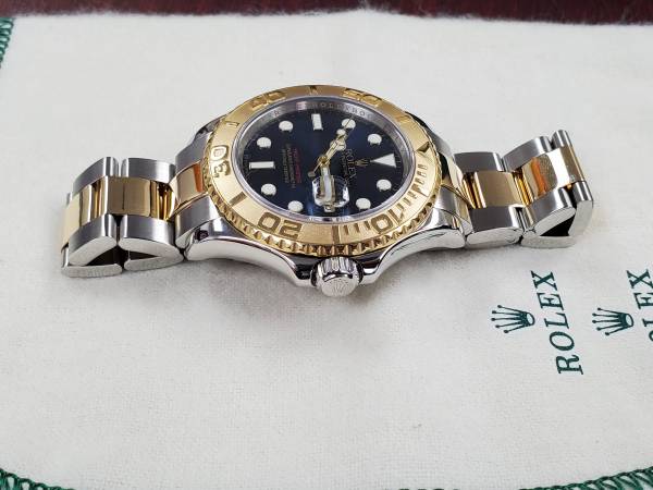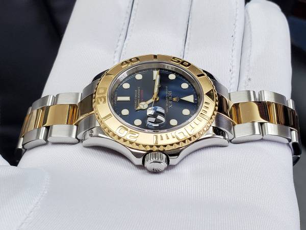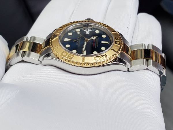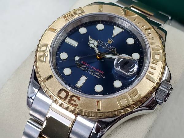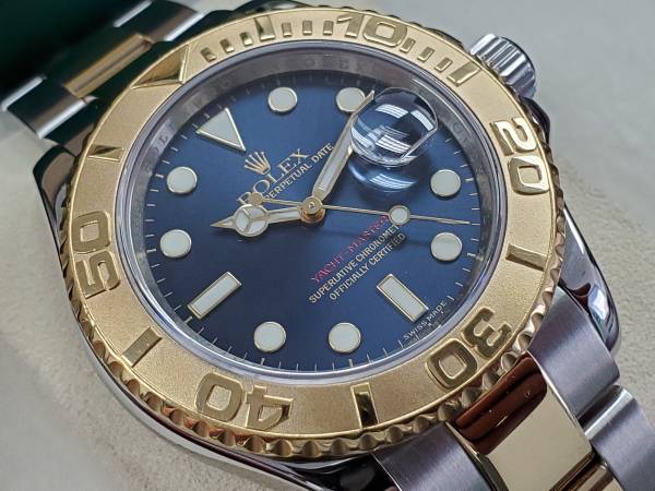 Rolex Oyster Perpetual Date YachtMaster Large full size 40mm 2 tone gold and stainless steel. Blue sunburst dial red print. 2010 model with engraved bezel ROLEXROLEX Watch in excellent condition....