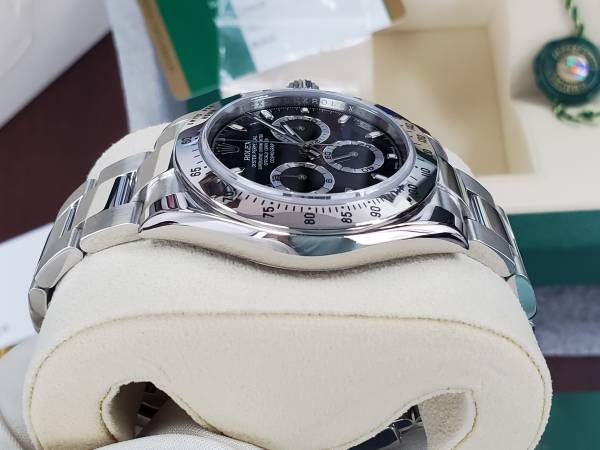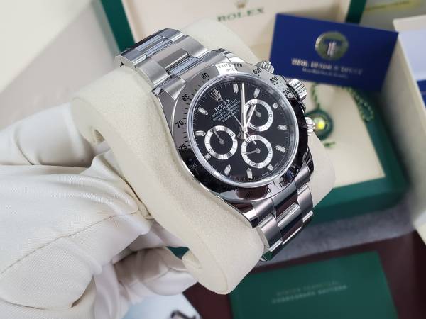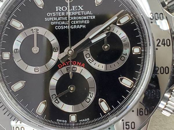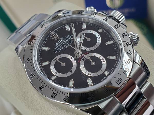 Iconic Rolex Daytona collection: Presenting last generation stainless steel Daytona oyster perpetual Cosmograph. 2015 Last batch year with new 5yr warranty card. Polished fat buckle shared with...