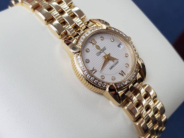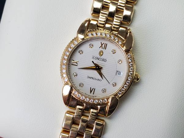 Concord Impresario Date 18k Solid Gold Watch Factory Diamonds -...