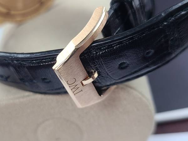 -- IWC of Schaffhausen brings this new model in the watchworld - Very elegant classy shape, constructed in bold 18kt "N5" gold and finished well with rhodium grey sunburst dial.