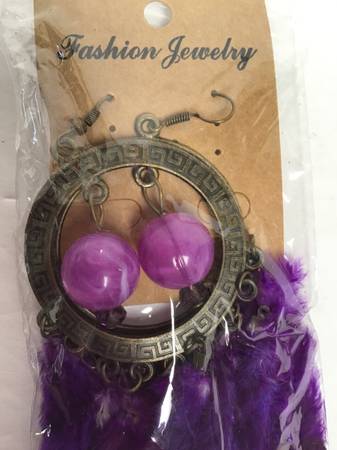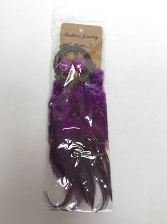 Purple Feather Dangle Earrings French hook earrings Purples and dark red hues Approx. 7-8 inches long New Located near La Brea & W Adams (90016) Shipping available B30