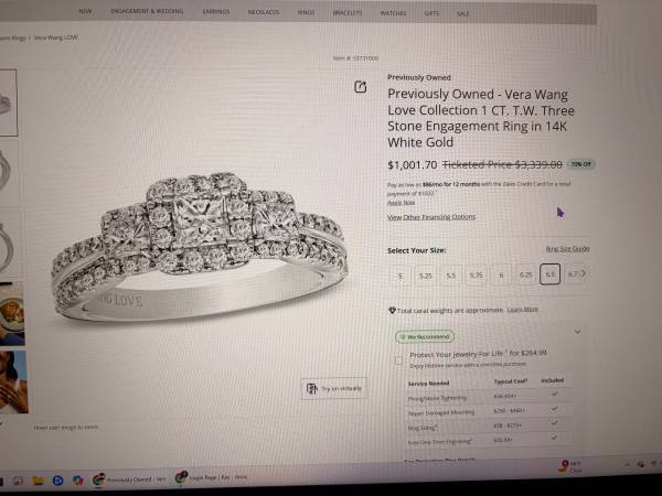 1 1/3 ct 14k white gold 6.5 female Kay’s jewelers