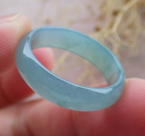 108596 VS Certified ICY Jadeite Jade RING Circle NO 8 Ring size: 8 Width size 5.3 mm Origin: Myanmar Burma Color: Green Free with Pouch