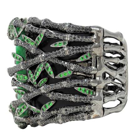 Bamboo is pavé set with round cut black diamonds weighing approximately 18.55 carats total