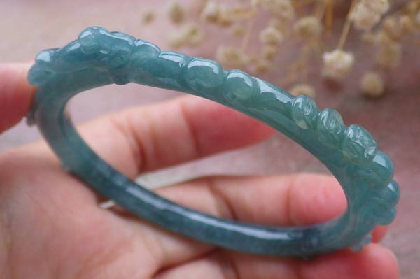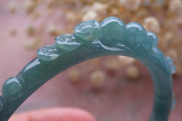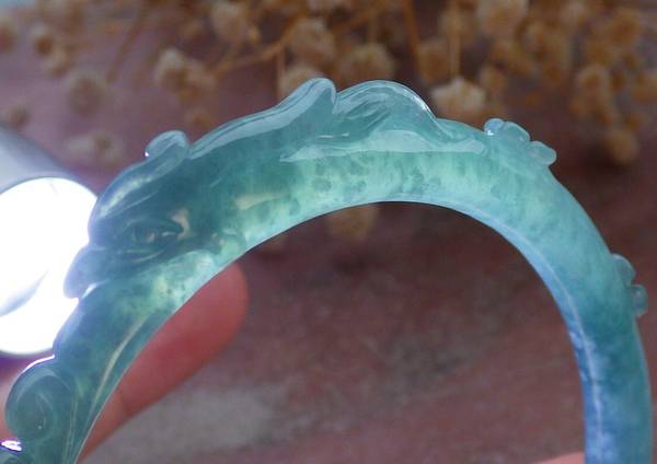 Certified A JADE JADEITE Icy Green Handmade Phoenix Bangle Bracelet 55mm VS 108992